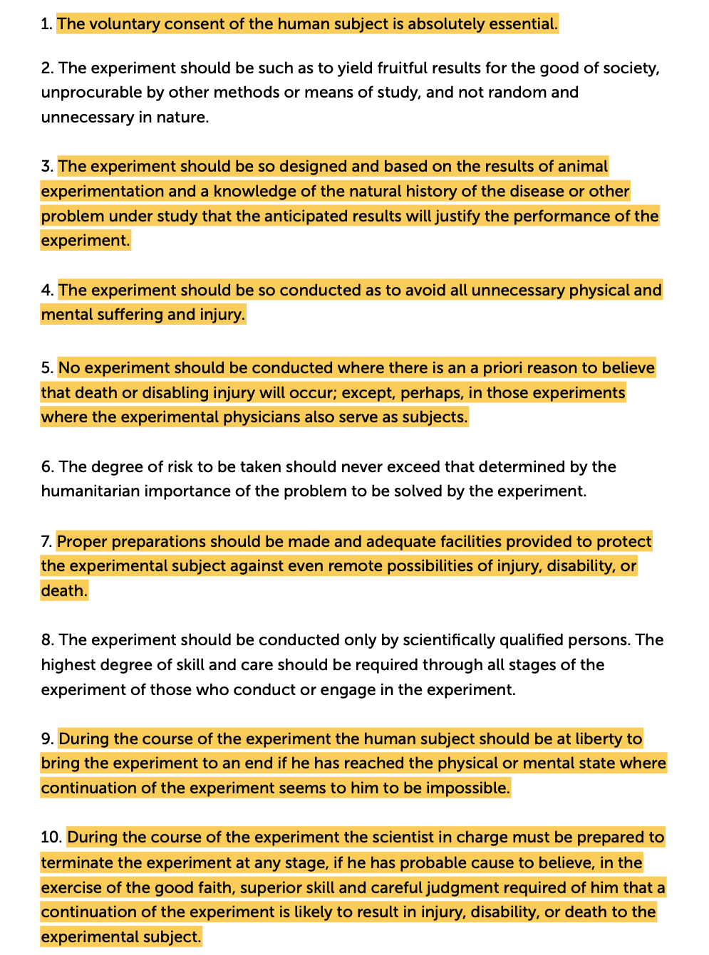And it conflicts with at least 7 of the 10 points of the Nuremberg Code, which was created in the aftermath of WWII to define the ethical boundaries of human experimentation. Even if someone views finding an alternative to gender-affirming care as a moral imperative, this policy—in subjecting a captive population to discredited, empirically harmful conversion practices—fails to meet the requirements for voluntary consent, consideration of previous results, avoidance of unnecessary suffering, risk limitation, proper safeguards against harm, freedom to withdraw, and the obligation to terminate harmful experimentation.