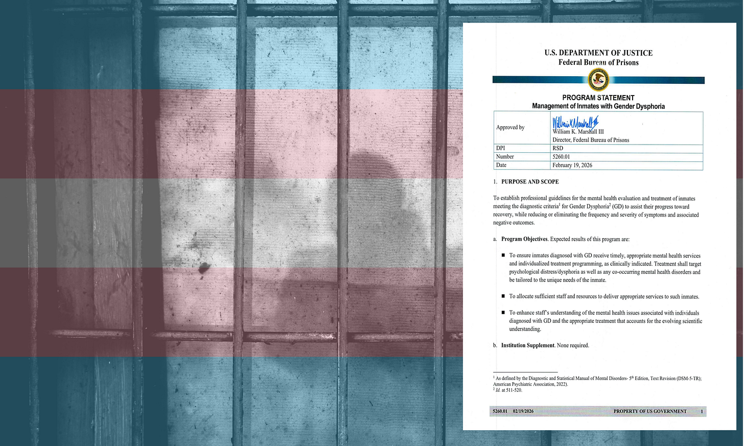 It only deviates in three key places: the purpose, the definitions, and the exceptions. In the relatively short purpose section, the BOP added language stating that it would “assist [trans people’s] progress toward recovery, while reducing or eliminating the frequency and severity of symptoms and associated negative outcomes.” Glaringly, trans people don’t “recover” from gender dysphoria—they alleviate it by socially and/or medically transitioning. Furthermore, those with gender dysphoria who do transition aren’t usually clinically designated as having “recovered,” either.