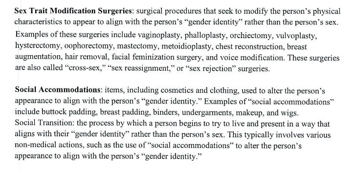 Then, in the definitions, the Trump administration added the following terms: “Sex Trait Modification Surgeries,” “Social Accommodations,” and “Social Transition.”
